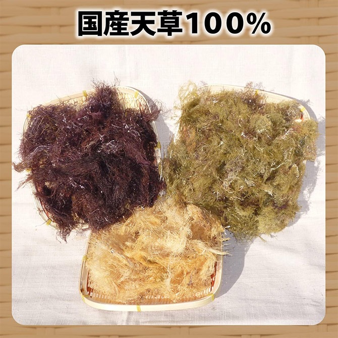 日本の中で良質な天草が採れるところで有名な伊豆・千葉産の厳選された国産天草を100%使用。