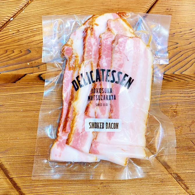 脂に塩っけスモークが混ざった絶品ベーコンです。