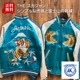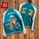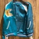 色鮮やかなターコイズブルーのサテン地に、オリエンタルな虎と富士山の刺繍がアクセントになった、シンプルでスカジャンらしいデザインです。