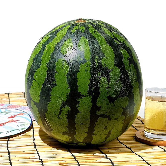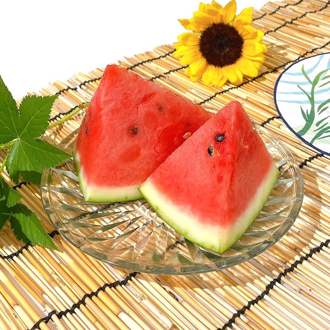 食べる2-3時間前にスイカの半分をタオルで覆い、水道水を少しずつ注いで食べるとよりおいしくいただけます。