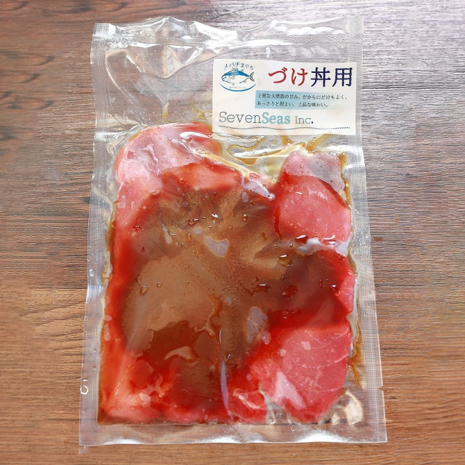 『メバチまぐろのづけ丼用』は、厳選された上質なメバチまぐろの赤身を使用しております。