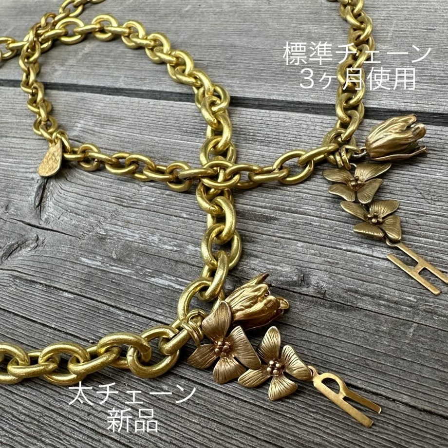 真鍮は時間と共に自然な風合いを増す経年変化が大きな魅力の一つです。 また、耐久性にも優れており長く愛用する事ができます。