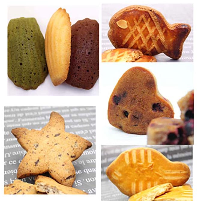 貝の型に仕上げた大人気のパイ菓子「シェルジャン」の他にも貝やおさかな型のかわいい美味しい創作焼き菓子が色々。湘南の海をイメージしたギフトセットです。