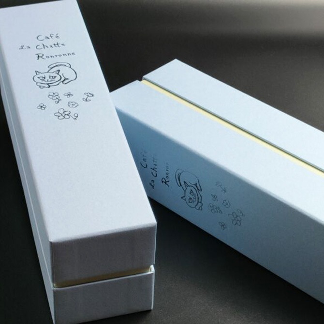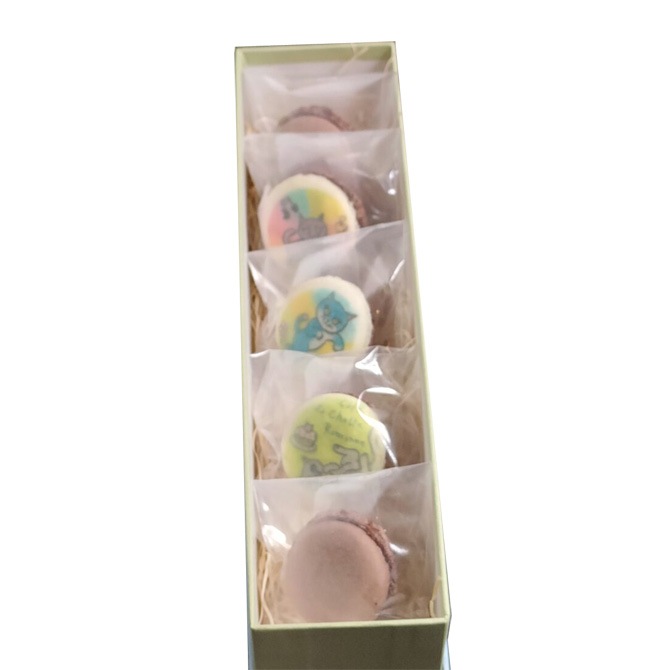 ライアンがデザインされたかわいい貼り箱にマカロンをいれて