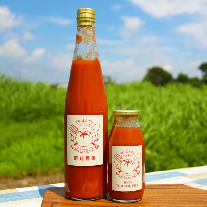 野﨑農園のトマトジュースはトマト以外のものは一切加えずに作った、100%トマトジュースです。