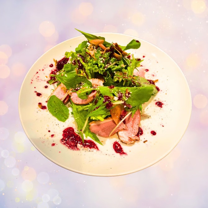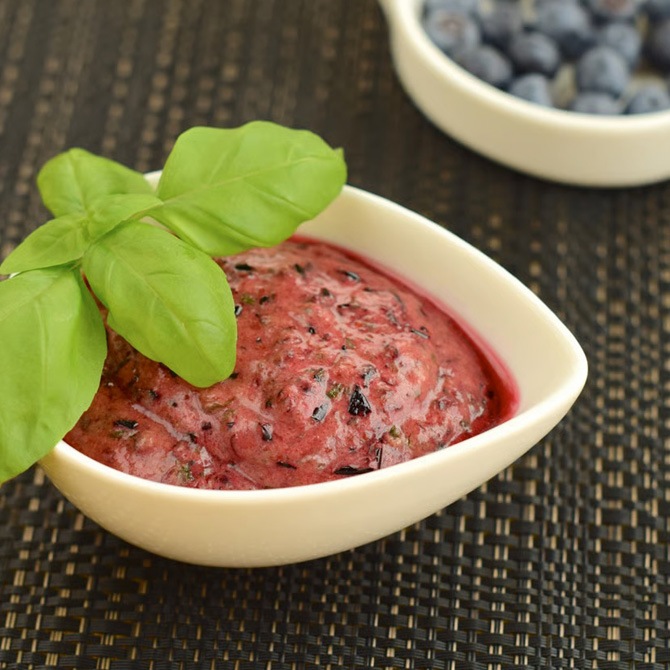 ブルーベリーの粒感も残していて、鮮やかな紫色の甘酸っぱいドレッシングがお皿を華やかにする新感覚のドレッシングです。