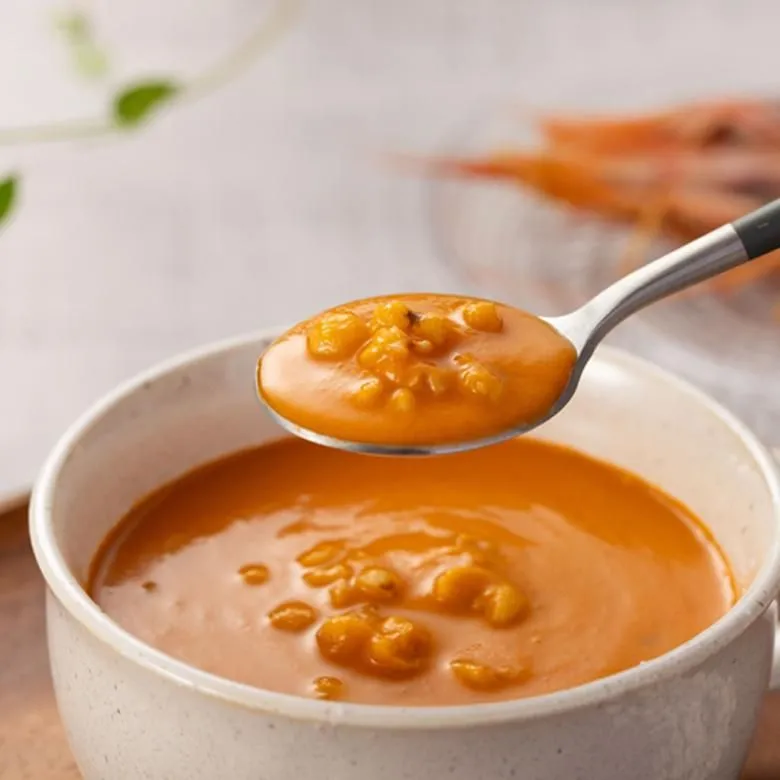 海老の旨味を凝縮し、人参、玉葱の甘みを加え濃厚で贅沢な味わいに仕立てました。