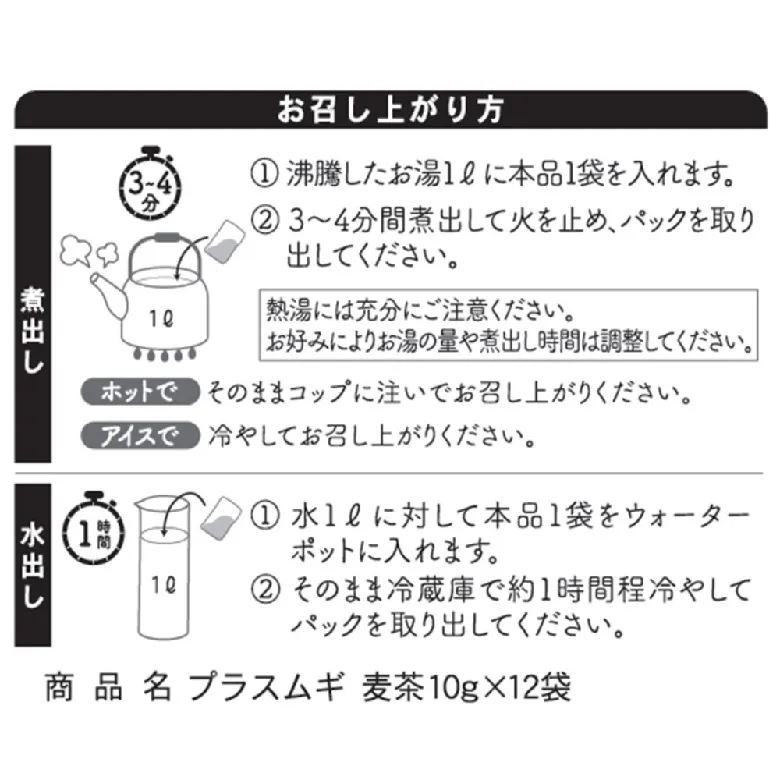 水からでも簡単にさわやかな美味しい麦茶ができるので、とても便利です。一番煎りの深入り焙煎にこだわった逸品です。