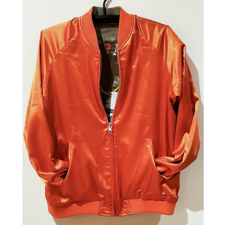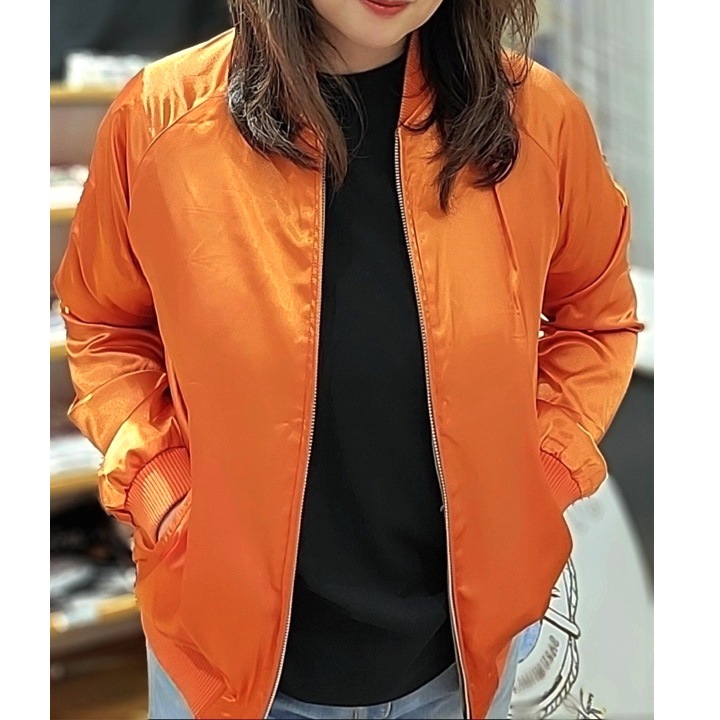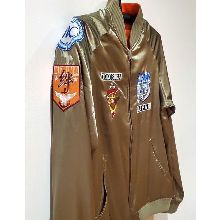 裏を返すと、オレンジのスカジャンとして着ていただけます。