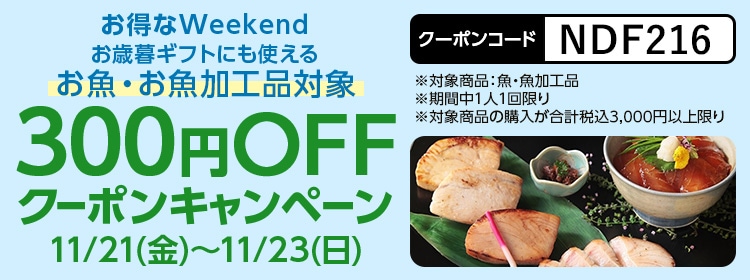 魚・魚加工品を対象とした「300円OFFクーポンキャンペーン」を実施します。