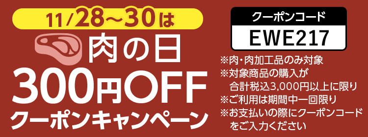DOSKAでのお買い物時に使える「肉の日300円OFF クーポンキャンペーン」を実施します。